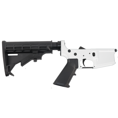 - AR-15 Completed Lower Receiver with Adjustable M4 Stock Assembly & Lower Parts Installed - Storm Trooper WhiteSpecial Price $149.99 was $219.99